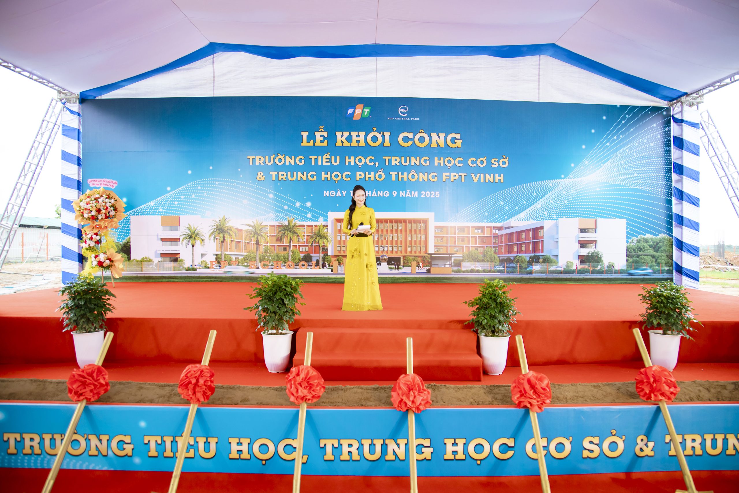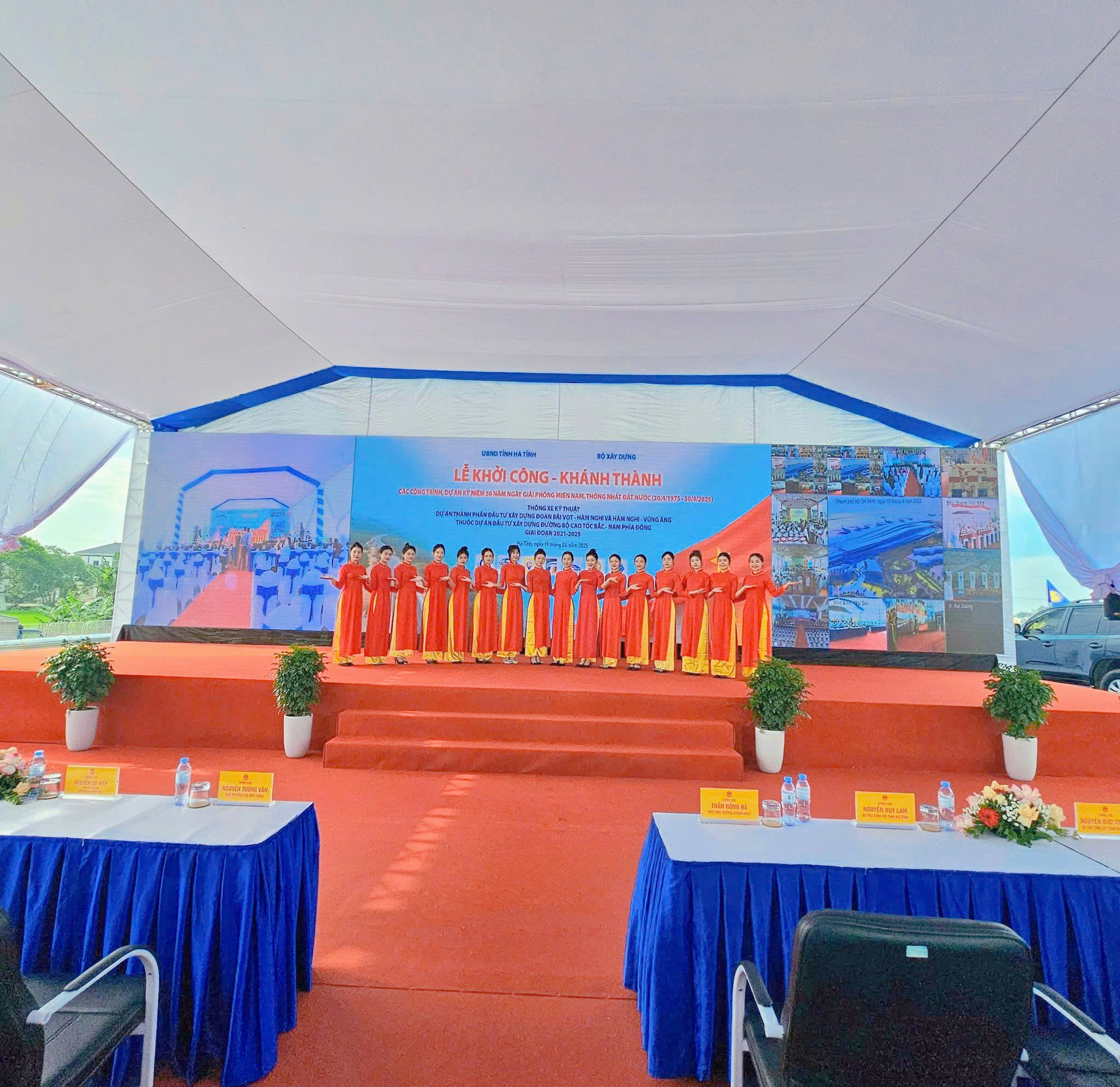 - Với lễ khai trương, khánh thành, sân khấu được thiết kế bắt mắt, có thể kết hợp backdrop, màn hình LED để tăng tính hiện đại.