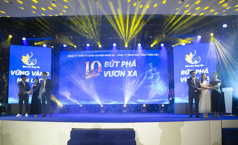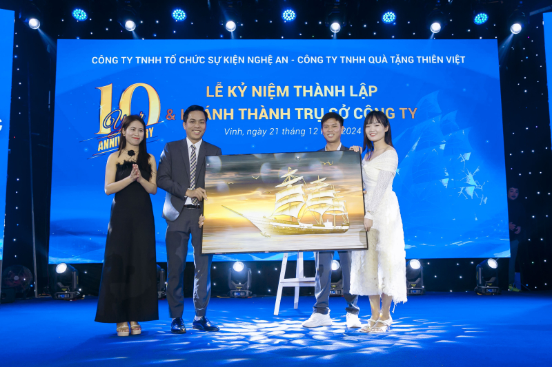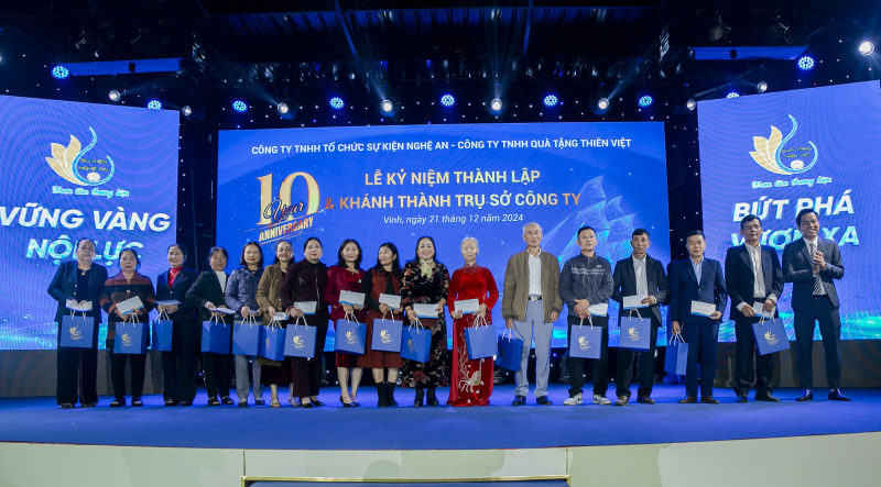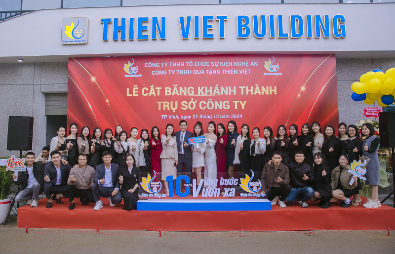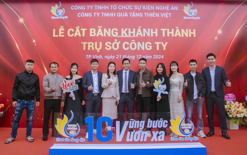 Buổi lễ kỷ niệm 10 năm thành lập và khánh thành thành trụ sở Công ty TNHH Tổ Chức Sự Kiện Nghệ An và Công ty TNHH Quà Tặng Thiên Việt đã diễn ra thành công tốt đẹp.