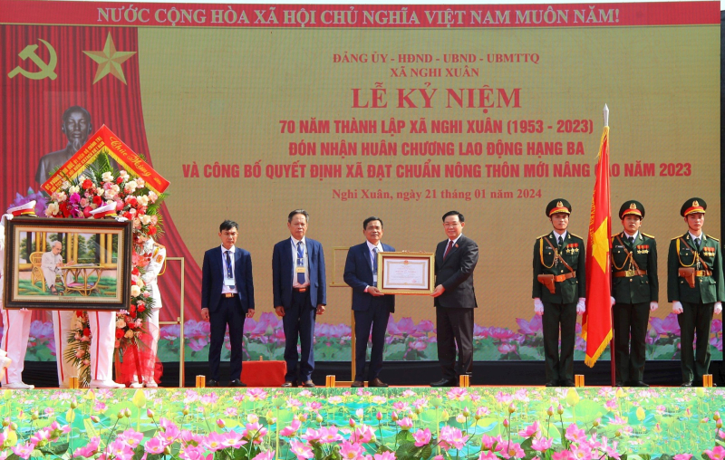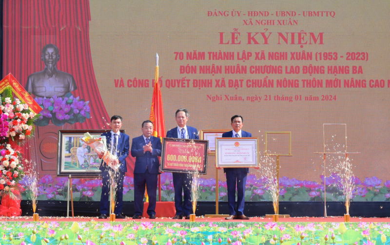 Sáng 21/1/2023, tại xã Nghi Xuân, huyện Nghi Lộc, tỉnh Nghệ An đã diễn ra lễ kỷ niệm 70 năm thành lập xã Nghi Xuân (1953-2023), đón nhận huân chương lao động hạng ba và công bố quyết định xã đạt chuẩn nông thôn mới nâng cao năm 2023.