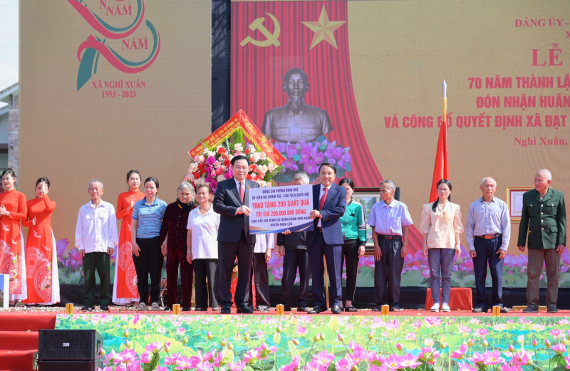 Tại buổi lễ, thay mặt Lãnh đạo Đảng, Nhà nước, Chủ tịch Quốc hội Vương Đình Huệ đã trao Huân chương Lao động hạng Ba tặng Đảng bộ, chính quyền và nhân dân xã Nghi Xuân. Trước thềm Tết nguyên đán Giáp Thìn, Chủ tịch Quốc hội đã trao 200 suất quà với tổng trị giá 200 triệu đồng tặng các gia đình có hoàn thành khó khăn của huyện Nghi Lộc.